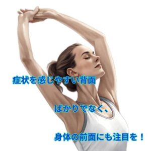 コリや張りは背面に感じる事が多々あるかと思われますが、感じている部分だけではなく、その反対の前側に目を向ける事も必要です。